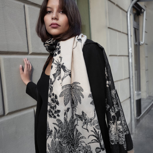 EsauritoSciarpa Nera/camel Toile de Jouy