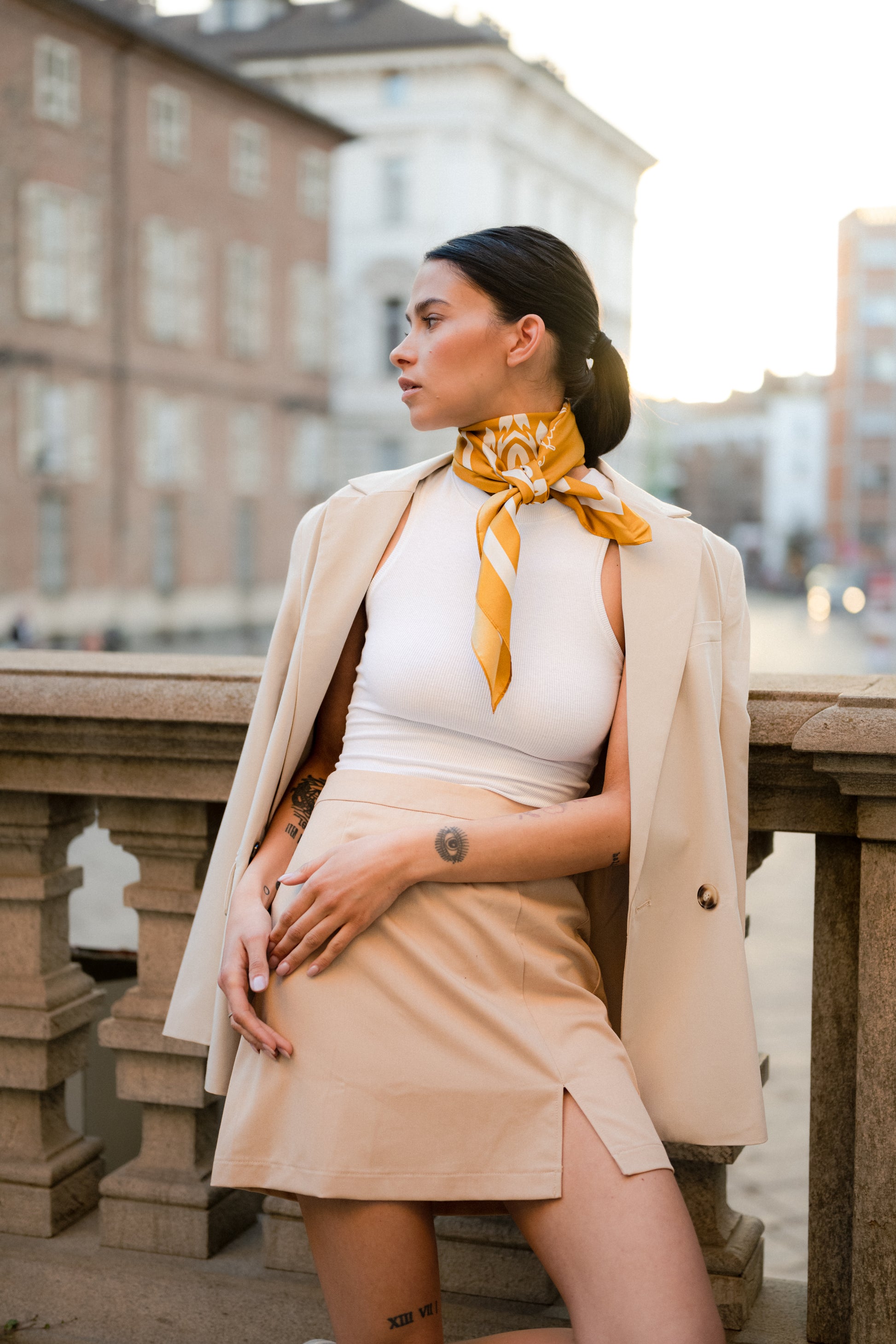 Accessorio intramontabile del guardaroba di ogni donna, il foulard è un must-have che può essere portato attorno al collo, come cintura, fascia, turbante, top o gonna.